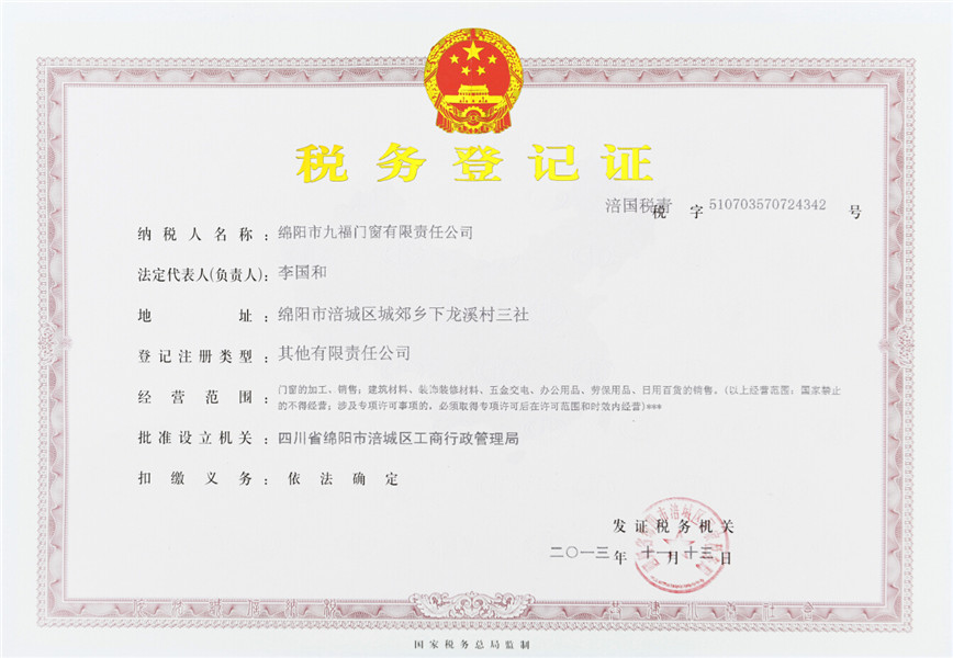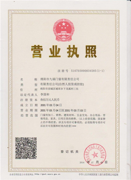 綿陽市九福門窗有限責(zé)任公司座落于中國西部美麗的科技城----綿陽。是川內(nèi)研發(fā)生產(chǎn)新型換代,生態(tài)環(huán)保室內(nèi)門和家具的企業(yè)之一。我公司生產(chǎn)的產(chǎn)品,綠色環(huán)保、堅固耐磨,抗擊性高、防潮阻燃、不含苯、不變形,連續(xù)六年經(jīng)四川省綿陽市質(zhì)量技術(shù)監(jiān)督局抽檢合格,符合中華人民共和國行業(yè)標(biāo)準(zhǔn)的各項要求。2011年,被中國產(chǎn)品培育委員會和中國品牌調(diào)查統(tǒng)計中心推介為《質(zhì)量·服務(wù)·信譽AAA企業(yè)》、《中國綠色環(huán)保產(chǎn)品》和《誠信經(jīng)營、消費者滿意產(chǎn)品》;注冊商標(biāo)“金九福”牌系列產(chǎn)品,在全國品牌評選推廣活動中,經(jīng)中國品牌認(rèn)證委員會和中國產(chǎn)品質(zhì)量評選中心審核,于2012年2月入選為《中國****品牌》…>>更多